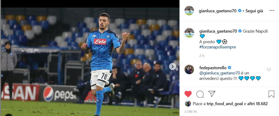Sul suo profilo Instagram, infatti, ha pubblicato una sua foto con la scritta: "Grazie Napoli. A Presto".
